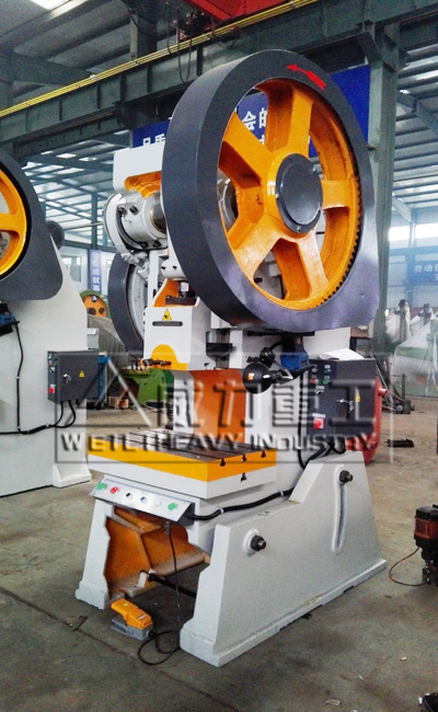 【產(chǎn)品描述】:可傾沖床是用于板料 沖壓的通用壓力機, 可實現(xiàn)剪切,沖孔,落料,彎曲和淺拉伸成形等冷沖壓工序。工作時人工送料,另外配置送料裝置時可實現(xiàn)單機自動化。 其結(jié)構(gòu)特點是:機身是用高強度鑄鐵制造,采用單盤氣動塊式摩擦離合器和制動器,無故障使用壽命遠(yuǎn)高于同類產(chǎn)品。滑塊帶有壓塌式保險裝置,當(dāng)機床超載時,保險器首先被壓塌,從而保證了整機不受損壞。其特點: